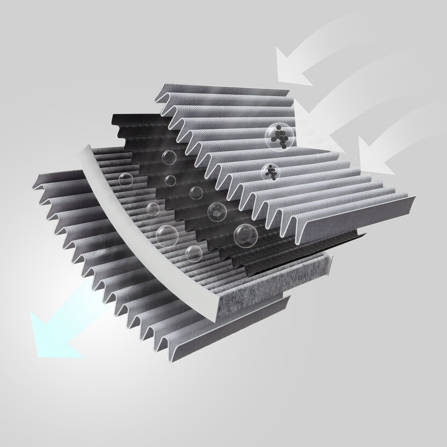 Offers effective odor control with a dense activated carbon layer that absorbs cabin odors, exhaust fumes, and VOCs. Its multi-layer design captures common particles while maintaining smooth airflow, providing a fresher cabin with OEM standard and compatibility.
